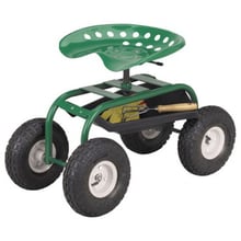 The swivel tractor-type seat lets you sit and work up to 23" above the ground and roll around on four large 10" diameter pneumatic tires. The tray under the seat is handy to carry your gardeners tools along with you..
